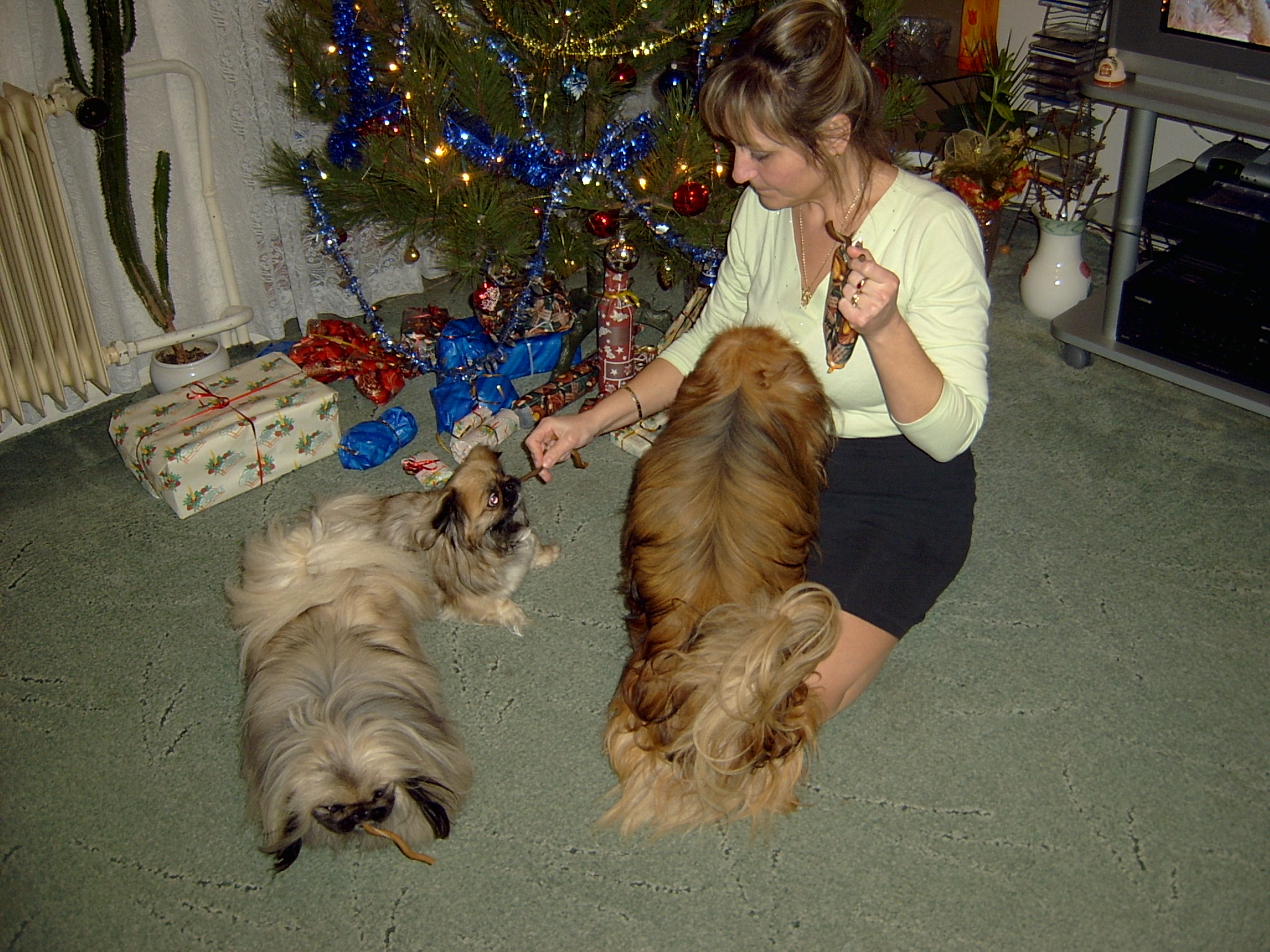 Obě jsme "velké" i když jedna ještě vzrůstem malá, fanynky všech zvířtek, holt jablko nepadlo daleko od stromu. Některá zvířátka se ovšem k běžnému držení a chovu hodí více a jiná méně a tak jsme se nejprve pustily do chovu, rozmazlování, ale i výcviku pejsků (mých yorků a 3 loveckých pejsků mého muže).